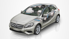 If the system detects a danger and the driver brakes at the same time, the adaptive Brake Assist can intervene: it provides the driver with the exact degree of braking power needed to ideally avoid an imminent collision. The COLLISION PREVENTION ASSIST is an innovative component of the Integral Safety concept from Mercedes-Benz. | |