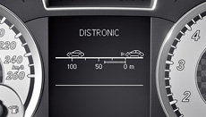 DISTRONIC PLUS proximity control (optional)[1] DISTRONIC PLUS helps the driver automatically maintain a specified distance from the vehicle ahead and helps minimise the risk of rear-end collisions by identifying potentially dangerous situations and reacting accordingly. As the sensors can operate between 0.2 and 200 metres the system is also helpful in city traffic or stop-and-go traffic. It can brake the vehicle to a standstill if necessary and also accelerate it again, if confirmed by the driver. In stop-and-go traffic, DISTRONIC PLUS applies the brakes automatically – if necessary, until the vehicle comes to a complete stop. Automatic braking is applied with a deceleration of up to 4 m/s²When the traffic situation improves, DISTRONIC PLUS automatically accelerates back up to the preset speed if the driver presses briefly on the accelerator or flicks the cruise control lever.