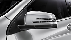 | | The Mirror package includes electrically folding exterior mirrors. The interior mirror and driver’s side exterior mirror also dim automatically. The exterior mirrors are electrically folded in and out again using a button within easy reach of the driver. An automatic function can be programmed via the multifunction steering wheel so that the exterior mirrors are folded in automatically when the vehicle is locked. The mirrors fold out again when the vehicle is unlocked and the driver’s door is opened. Both the interior mirror and driver’s-side exterior mirror feature sensors which measure the light intensity on the mirror compared to the ambient light. If a significant difference is detected between the two values, the mirrors are automatically dimmed.