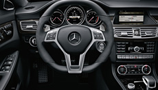The CLS 500 BlueEFFICIENCY and the CLS 500 4MATIC BlueEFFICIENCY already come equipped as standard with a front and rear apron in AMG bodystyling, the radiator grille with a single louvre, the two-pipe exhaust system with polished stainless steel tailpipes as well as brushed stainless steel sports pedals with rubber studs.