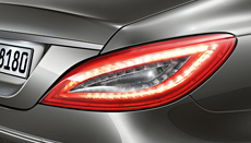 The dynamic LED High Performance headlamps in conjunction with an LED daytime running lamp strip in the bumper cover are innovative aspects of the vehicle light array. The novel, unmistakable design of the LED high performance headlamps underscores the dynamism of the vehicle design, lending the front a particularly high value appeal. In the dark, the headlamps are unmistakable on account of the C-shaped LED side-marker lamps. The LED technology, used by Mercedes-Benz for the CLS for the very first time, combines maximum radiance with minimal energy consumption and a long lifetime. What’s more, the light produced by the LED high-performance headlamps is very easy on the eyes, as its colour temperature of 5500 Kelvin renders it closer to daylight than the light produced by xenon headlamps.