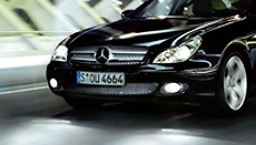 On request you can light up the road ahead with bi-xenon headlamps, which include the Active Light System and cornering lights (standard for the CLS 63 AMG, but without cornering function). Integrated into the front fog lamps, the cornering lights are automatically activated at speeds of up to 40 km/h when the vehicle lights are switched on, providing additional illumination when cornering or turning off.