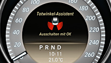 The Driving Assistance Package Plus makes an active contribution to safety in everyday driving situations. The proximity control, lane-change control and blind spot warning functions together with the brake system optimisation all contribute decisively to safe travel and a safe arrival.