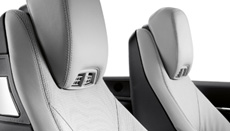 The climatised seats improve ride comfort and reduce transpiration thanks to a pleasant air flow and selectable seat heating. Fans integrated in the seat upholstery uniformly distribute a flow of air in three intensity levels under the leather backrest and cushion covers. The air flows through the fine perforation and quickly cools the surface of the seats to a pleasant temperature – even if the vehicle has been heated by an intense amount of sunlight for a longer period of time. On cold days you can turn on the three-level adjustable seat heating.
