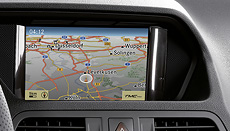 The Audio 50 APS map-based navigation system is equipped with a CD/DVD player and telephone keypad. It can be operated via the multifunction steering wheel and the controller. Navigation is based on a 2D map representation on a 5.8 inch colour display. The automatic traffic jam tracker can help you to avoid traffic hazards and congested routes. The system is also available with an optional 6-disc DVD changer and the LINGUATRONIC voice-operated control system.