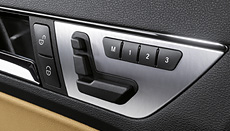 The memory package makes frequent switches between drivers much more convenient. It stores individual settings for the driver’s seat and front-passenger seat for up to three people. The driver simply chooses a setting at the push of a button and the seats (including both electrically adjustable four-way lumbar supports), steering column and exterior mirrors are automatically restored to the previously saved positions. The PRE-SAFE® positioning function can also move the front-passenger seat into a more favourable crash position in critical situations.