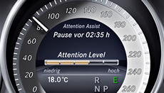 The ATTENTION ASSIST function is particularly helpful on long journeys and when driving at night; the system warns the driver if it detects signs of failing attention and increasing weariness. At speeds of between 60 and 200 km/h, ATTENTION ASSIST warns the driver visually and audibly as soon as it detects any signs of drowsiness or inattention.