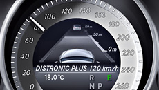 DISTRONIC PLUS proximity control helps the driver to maintain a specified (timed) distance from the vehicle ahead when travelling at speeds of 0 to 200 km/h. With the new Steer Assist the system helps the driver stay in lane, primarily by monitoring lane markings and, at lower speeds, the vehicle in front. Implementing BAS PLUS Brake Assist in conjunction with the PRE-SAFE® brake system helps to avoid rear-end collisions more effectively. If radar sensors identify a potential collision and the driver applies the brakes, BAS PLUS is primed to apply a brake force commensurate to the situation and available stopping distance. In the new E-Class the BAS PLUS function has been expanded to include for the first time crossing objects and pedestrians, something that is particularly relevant at intersections.