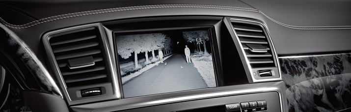 The system works with infrared headlamps and an infrared camera which transmits an image as a clear grey-scale image which is shown in the central display of the COMAND Online multimedia system. Pedestrians can be automatically identified and highlighted in the display. With this option, it is easier to identify people, animals and objects even when visibility is poor.