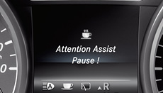 The ATTENTION ASSIST driving assistance system can warn the driver when typical signs of drowsiness are detected, and therefore enhances driving safety.The driving characteristics are analysed by the ATTENTION ASSIST system, even when it is switched off. If the system is then subsequently switched on during the journey, the complete trip data from the start is taken into account. ATTENTION ASSIST continuously analyses driving behaviour and steering movements. If the system detects certain steering patterns that frequently accompany drowsiness, it warns the driver visually by displaying the "coffee cup" symbol in the instrument cluster at the same time as emitting audible signals. ATTENTION ASSIST can be activated and deactivated in the main menu of the instrument cluster under "Assistance systems". When switched on, it is active at speeds between 80 and 180 km/h.