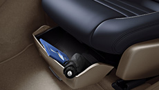 | | Climate-controlled front seats, seat heating and ventilation, perforated leather The climatised seats improve ride comfort and reduce transpiration thanks to a pleasant air flow and selectable seat heating. Fans integrated in the seat upholstery uniformly distribute a flow of air in three intensity levels under the leather backrest and cushion covers. The air flows through the fine perforation and quickly cools the surface of the seats to a pleasant temperature – even if the vehicle has been heated by an intense amount of sunlight for a longer period of time. On cold days you can turn on the three-level adjustable seat heating.