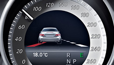 | | Reversing camera with dynamic guide lines in display The reversing camera offers convenience and added safety. Integrated into the boot lid, the camera transmits an image of the area behind the vehicle to the central COMAND Online multimedia system (optional extra). The camera image not only makes parking easier but also aids in manoeuvring on terrain with visibility restrictions.