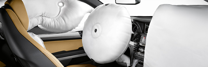 The E-Class Coupé is fitted as standard with front airbags, front sidebags plus windowbags for all seats. There is also a kneebag for the driver. Sidebags for the rear are available as an option.
