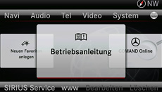 | | Digital Owner's Manual (part of COMAND Online) The Digital Owner’s Manual makes it possible to call up information on the operation of the vehicle via the symbol of the globe on the COMAND Online system. The main advantage over its print equivalent: The information is close to hand when the driver needs it; and the system also provides fast and convenient search options.The system contains instructions on how to operate both the vehicle and the COMAND Online multimedia system. The visual search is a further highlight. This multimedia search function leads you via the 360° view of the vehicle to the information you are seeking. This can be called up via the rotary press-button control in the centre console. Depending on the market variant, the information sought can be viewed in up to 17 languages.