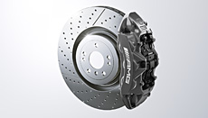 AMG high-performance brake system[3] The AMG high-performance braking system gives outstanding deceleration performance and sensitivity thanks to the internally ventilated, perforated brake discs. The system comprises 390 x 36 millimeter brake discs (perforated and internally ventilated) with 6-piston brake callipers at the front, and internally ventilated 345 x 26 millimeter brake discs with a single-piston combined floating brake calliper at the rear. The brake callipers are also finished in silver to make them stand out.