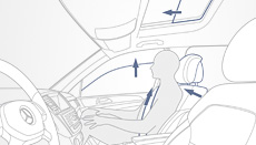 Airbags for driver and front passenger The airbags for the driver and front passenger provide protection for the head and torso in a collision, and also afford additional stability to the entire body. They are thus able to mitigate the severity of injuries sustained in an accident. The airbags are deployed when the crash sensors detect an impact of sufficient force.